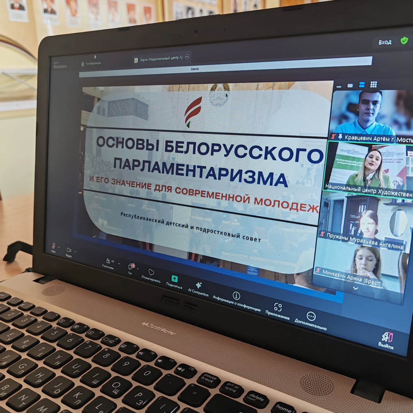 Артем Кравцевич, член Молодёжного парламента при Мостовском районном Совете депутатов, принимает участие в вебинаре "Основы белорусского парламентаризма и его значение для современной молодежи"