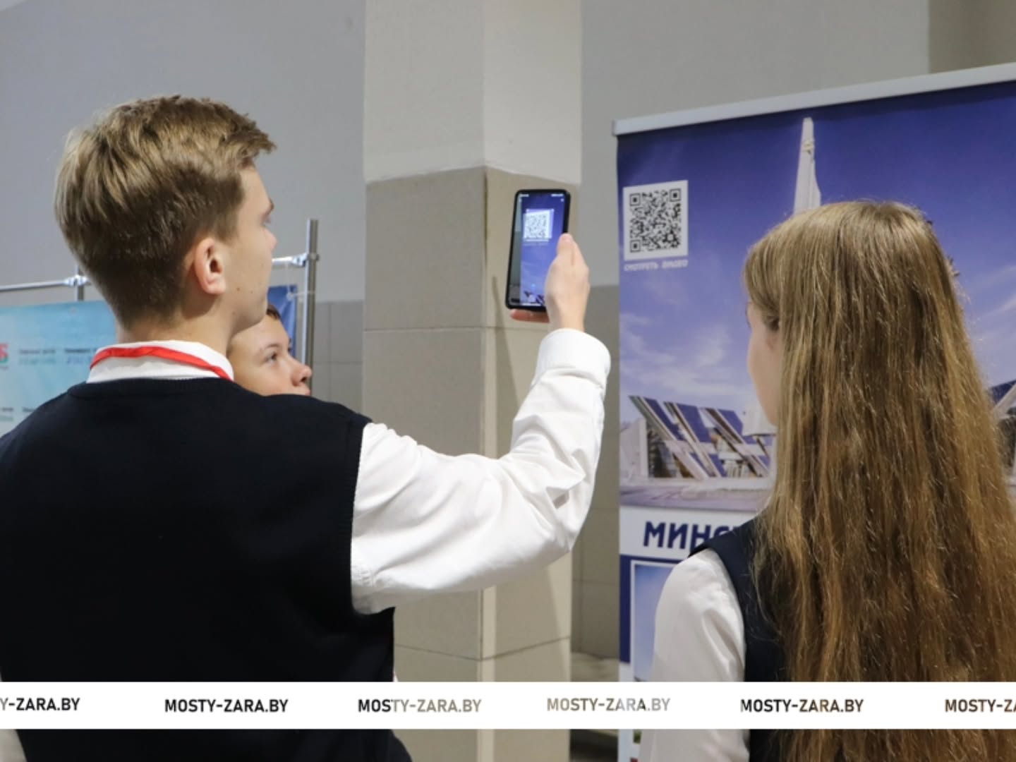 Артем Кравцевич, председатель ученической палаты Молодёжного парламента при Мостовском районном Совете депутатов, учащийся Средней школы № 5 г. Мосты имени Василия Леонтьевича Володося, пришел с одноклассниками и с интересом изучал информацию: